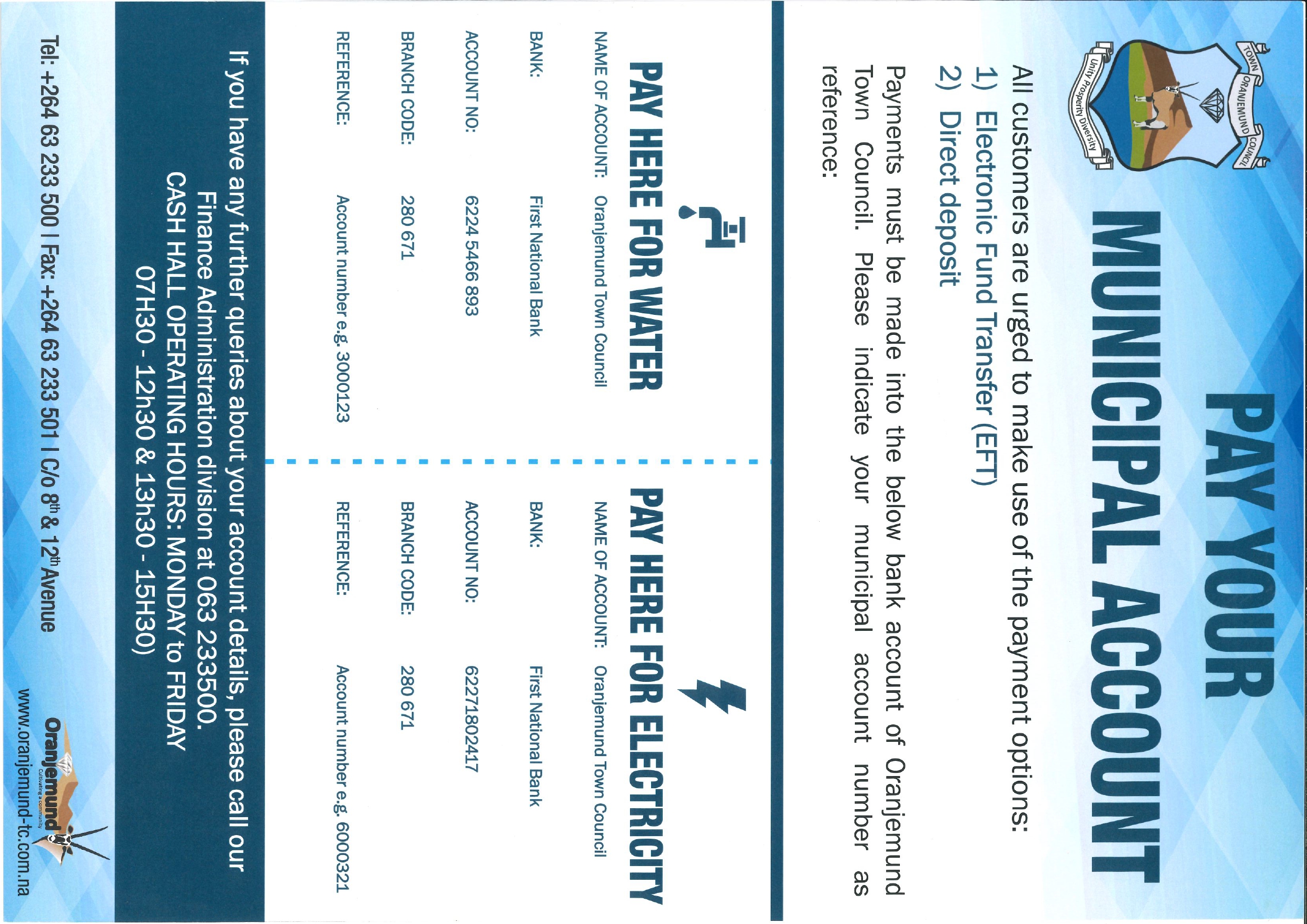 For more information or assistance, please contact our Finance Department – Debtors and Revenue Collection division.